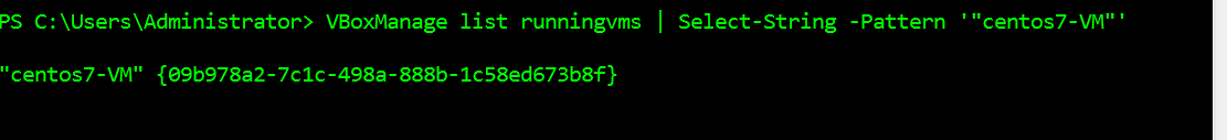 VBoxManage list runningvms | Select-String -Pattern '"centos7-VM"'