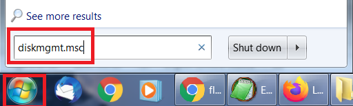 To open the utility, click the Windows icon on your toolbar (bottom left), type diskmgmt.msc into the search box and hit the Enter key on your keyboard.