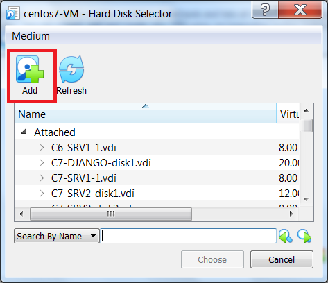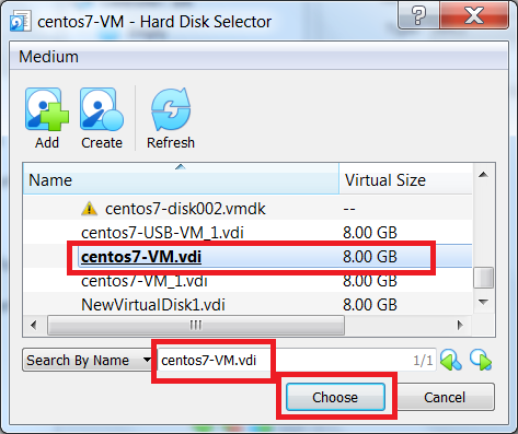 Back on the Hard Disk Selector screen, enter the newly created disk name in the search box and click Choose