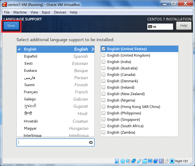 To set your language, or to add language support, from the Installation Summary page, click Language Support