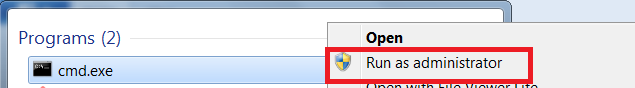 cmd in the search box, then, right-click the Command Prompt shortcut (cmd.exe) that appears in the result, and select