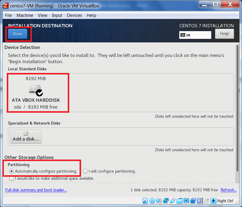 Second, enter the host name. To keep it simple, I entered centos7-VM and clicked Apply. Finally, click Done.