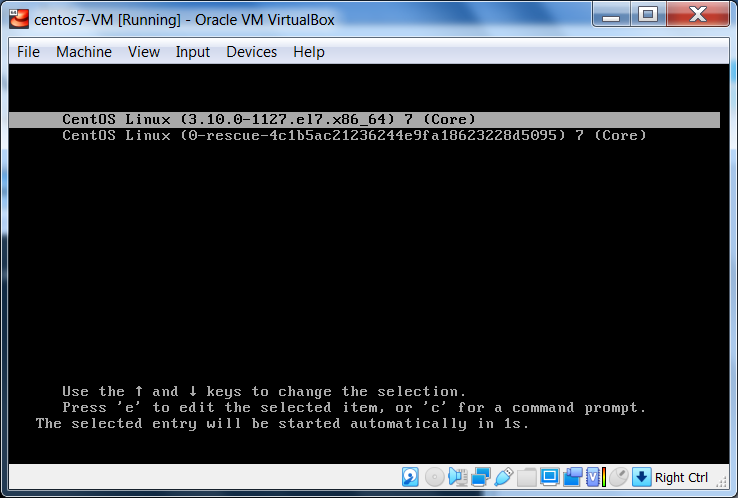Now that we only have the virtual hard disk that contains the CentOS 7 installation, we can start the VM.