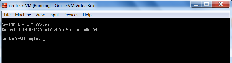 Our CentOS 7 VM has started successfully and we see the login screen.