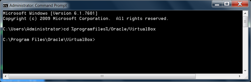 Please note, if you installed VirtualBox to a custom directory, change the command below to reflect your VirtualBox installation location.