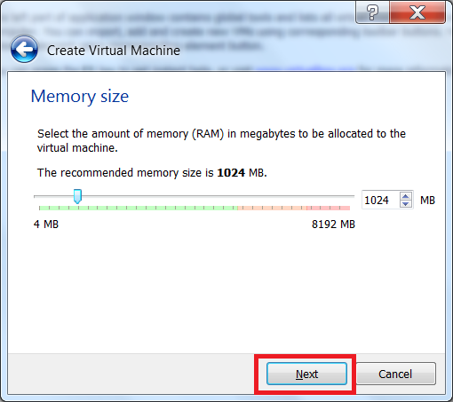 The next screen asks for the amount of memory (RAM) you wish to allocate to this machine.