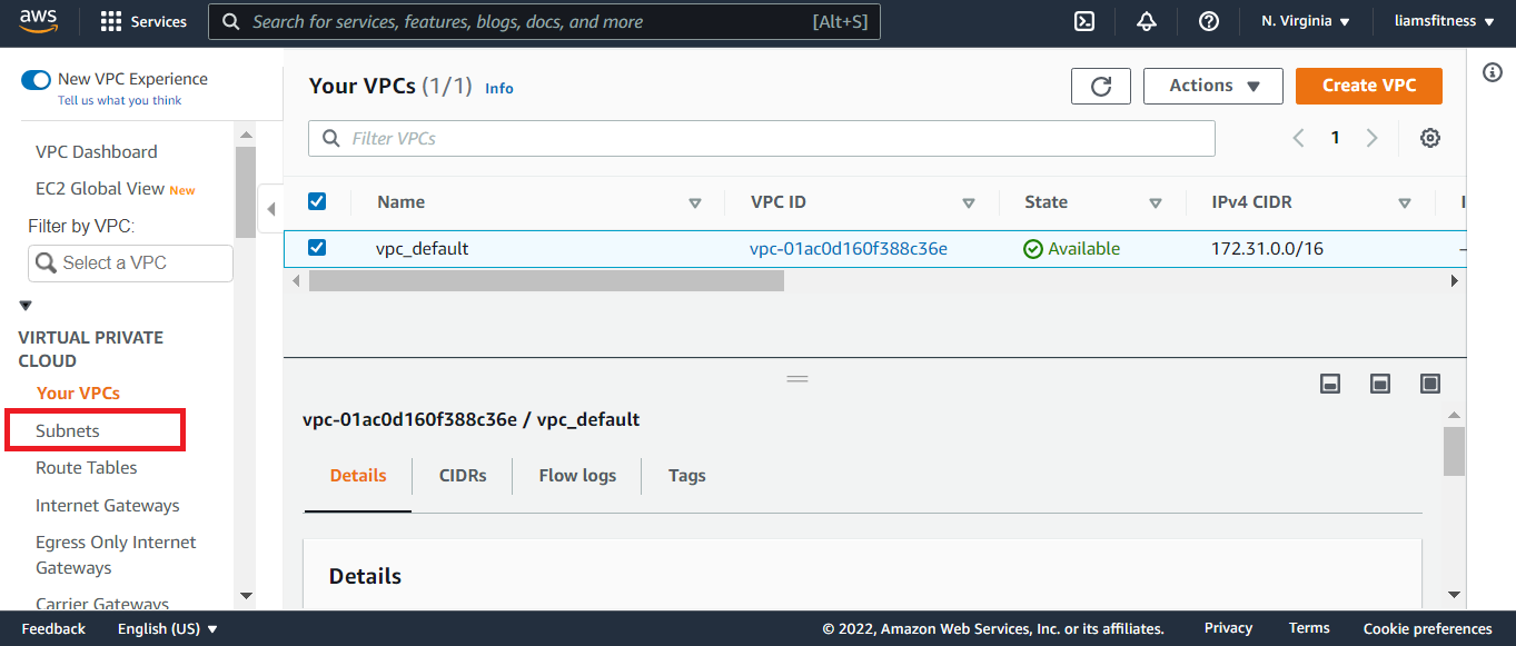 Before we create the EC2 instance, we will configure our default VPC (Virtual Private Cloud) so that it will be easier to work with moving forward. The VPC will allow us to launch resources in an isolated virtual network.