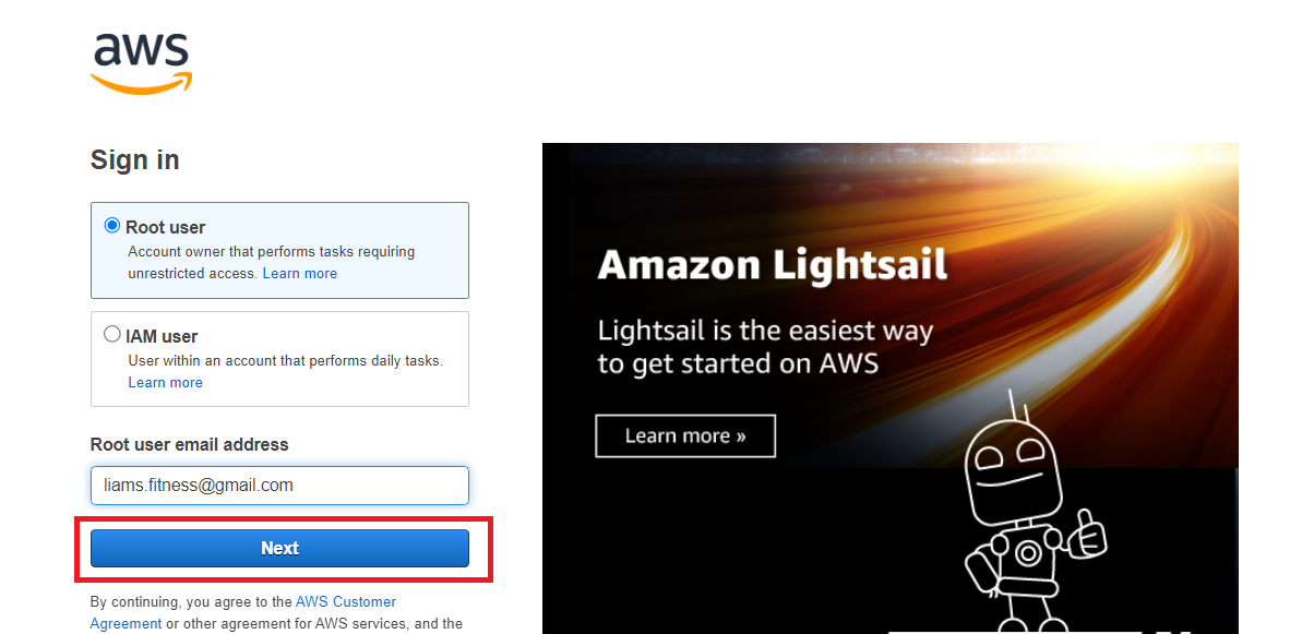 To begin, go to the following website,https://aws.amazon.com/console/ and log in to the console.