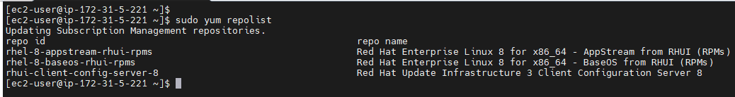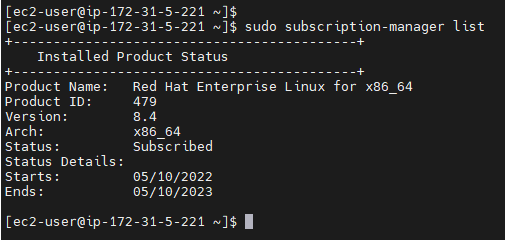 Your session should open to your newly created EC2 instance running RHEL 8.