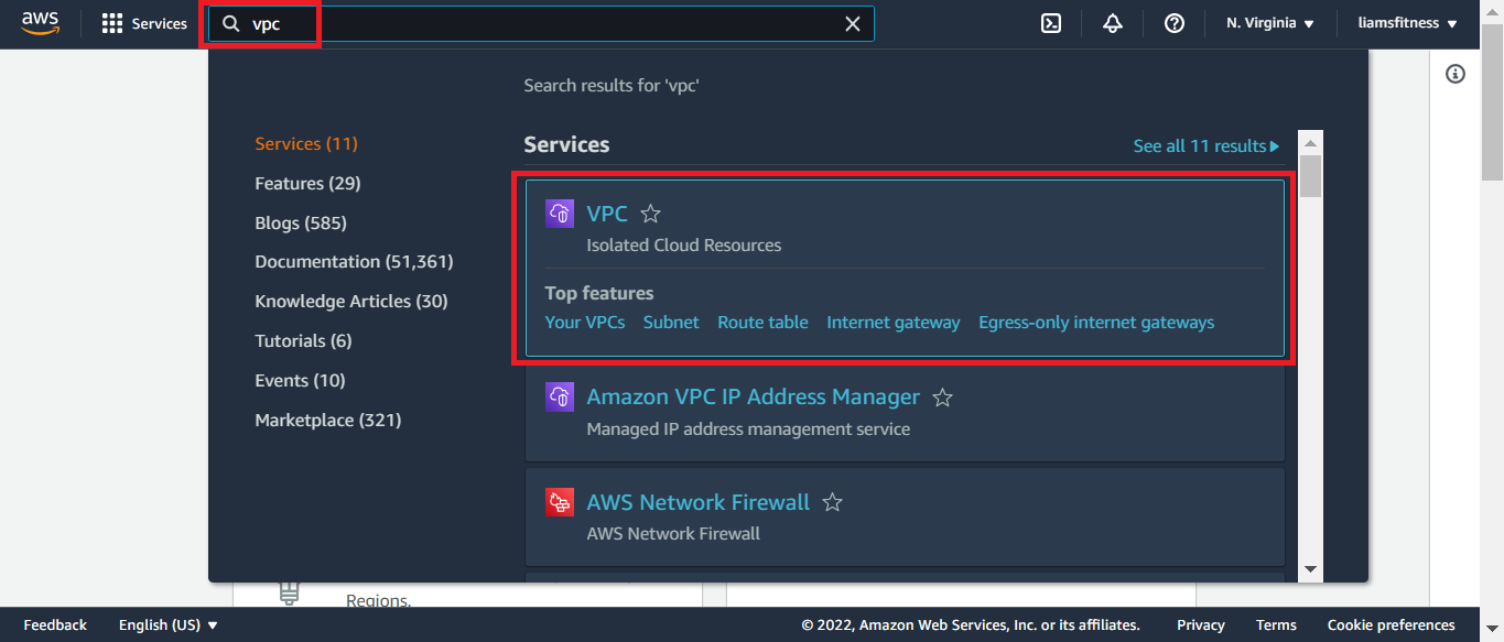 Once logged in, enter VPC in the search bar and select VPC Isolated Cloud Resources.