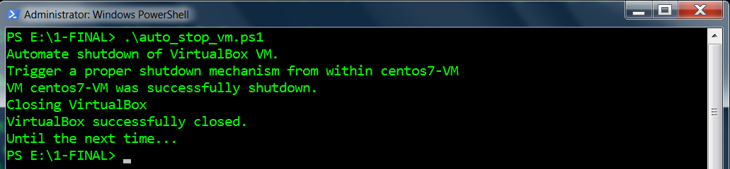 Write-Host "Automate shutdown of VirtualBox VM."