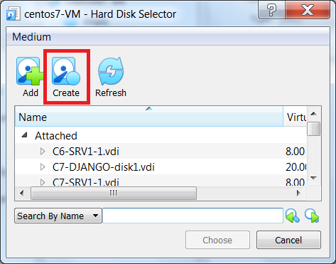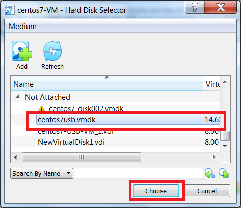 Back on the Hard Disk Selector screen, enter the newly created disk name in the search box and click Choose