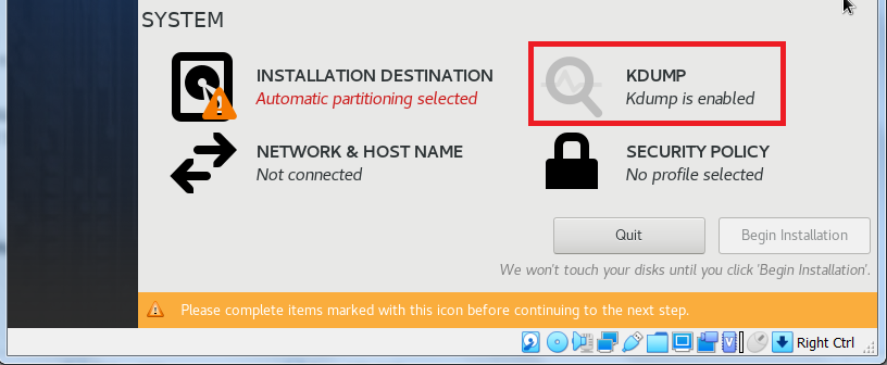 On the Installation Summary page, we need to configure a few settings before we can begin the installation.
