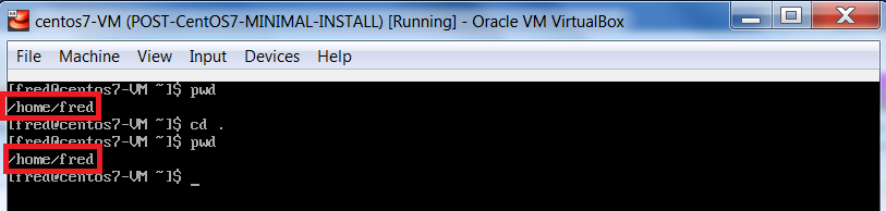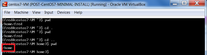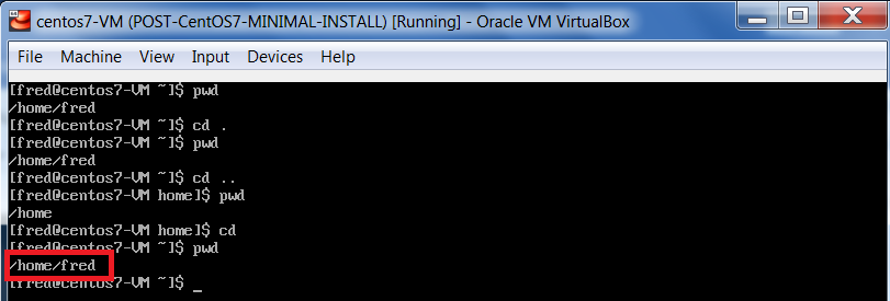 In my case, since I just logged in as the regular user (also known as a non-root user) fred, I am in the following directory: /home/fred