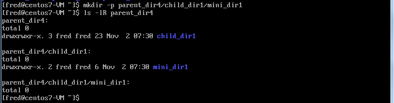 $ mkdir -p parent_dir4/child_dir1/mini_dir1