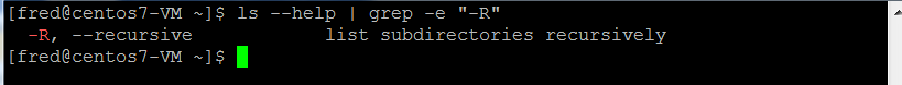 To confirm that we’ve created the new directory structure, we will use the -R option, of the ls command, which lists subdirectories recursively. Again, I used the ls command's --help option to see if that option was available.