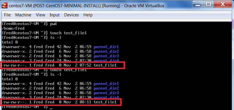 You will notice that we successfully created a file. The touch command is also used to change file access and modification timestamps. If a user creates an empty file, using touch, the file’s access, and modification, timestamps can be changed when the user has content to add to the file.