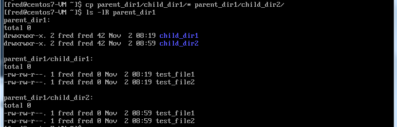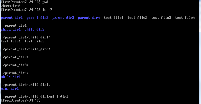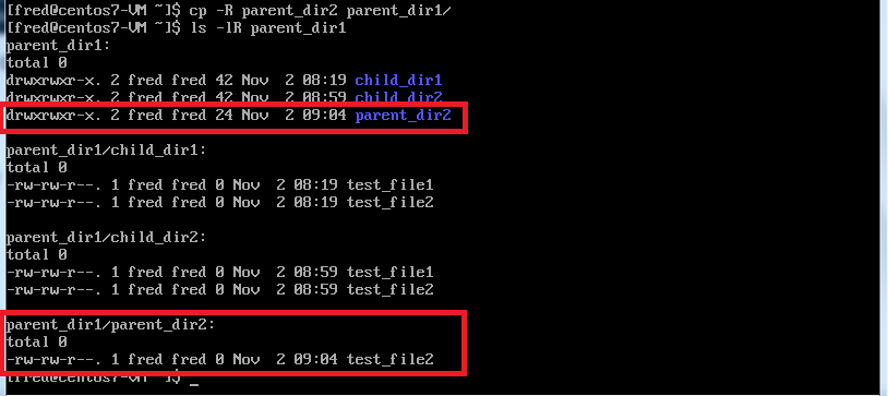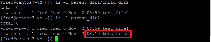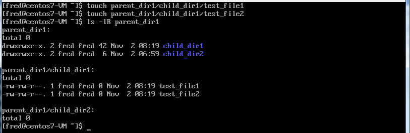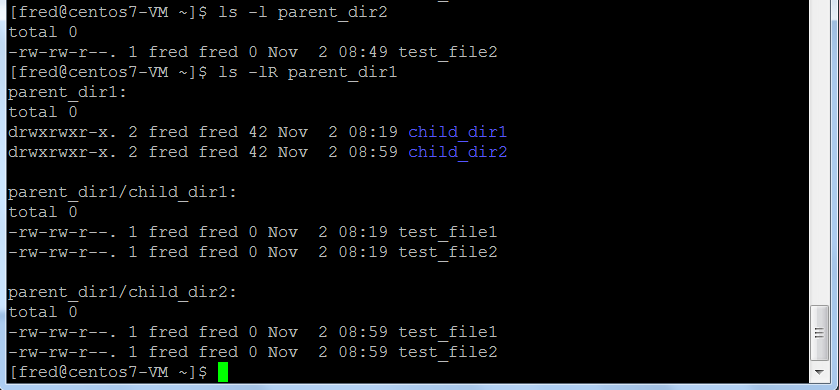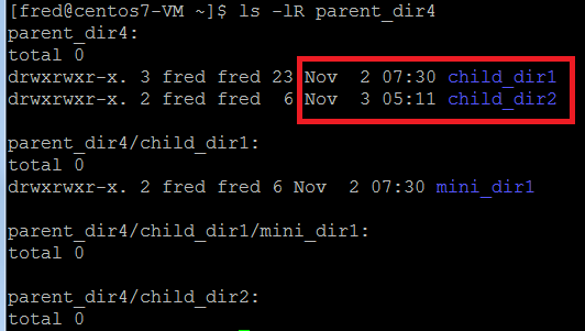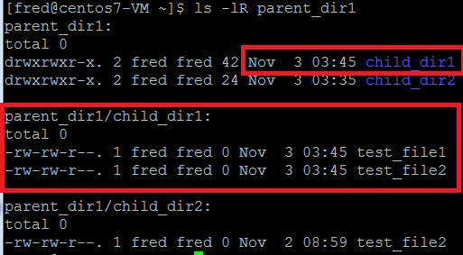 $ ls -lR parent_dir1 // recursively list directory contents for verification