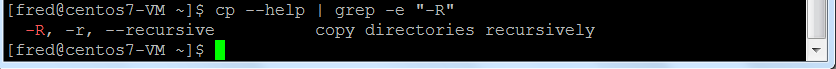 To finish off this section, we will copy a directory, including its contents, into another directory. To do this we must use the -R option of the cp command.