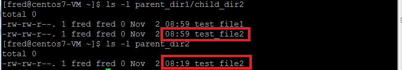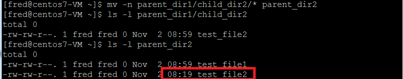 Note that no file was moved. Timestamp for test_file2 did NOT change.