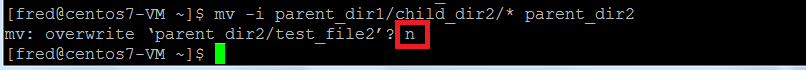 Note that only one file was moved, test_file1, and that test_file2 was NOT overwritten.