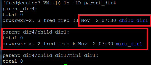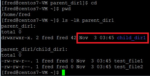 $ ls -l parent_dir1/child_dir1 // directory listing for verification