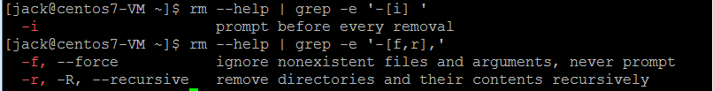 Both delete (remove) operations succeeded. Below is a listing of the rm command options we will cover.