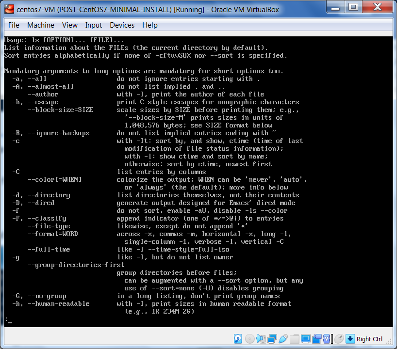 You will notice that I added a pipe '|', which is used to redirect the results of ls --help to the less command, which allows for navigation of the results using a keyboard’s up/down keys.