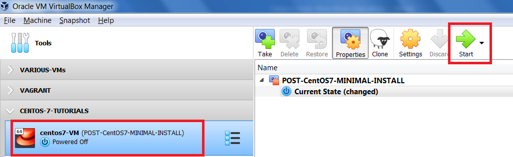 From the VirtualBox Manager interface, ensure your VM is selected and click Start
