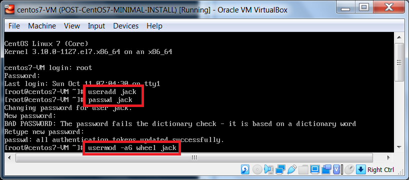 If you already have access to a CentOS 7 minimal install VM, but have forgotten the root user’s password, see my tutorial here. You will need this password to create a non-root user. Or, you can use another non-root user that has sudo privileges.