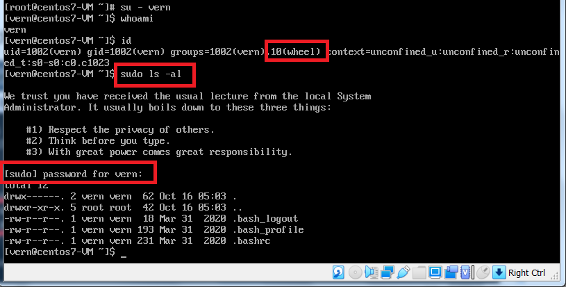 # usermod -aG wheel vern // add non-root user to ‘wheel’ group