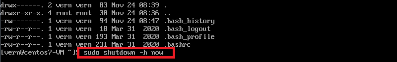 $ sudo shutdown -h now // -h option used to halt the system